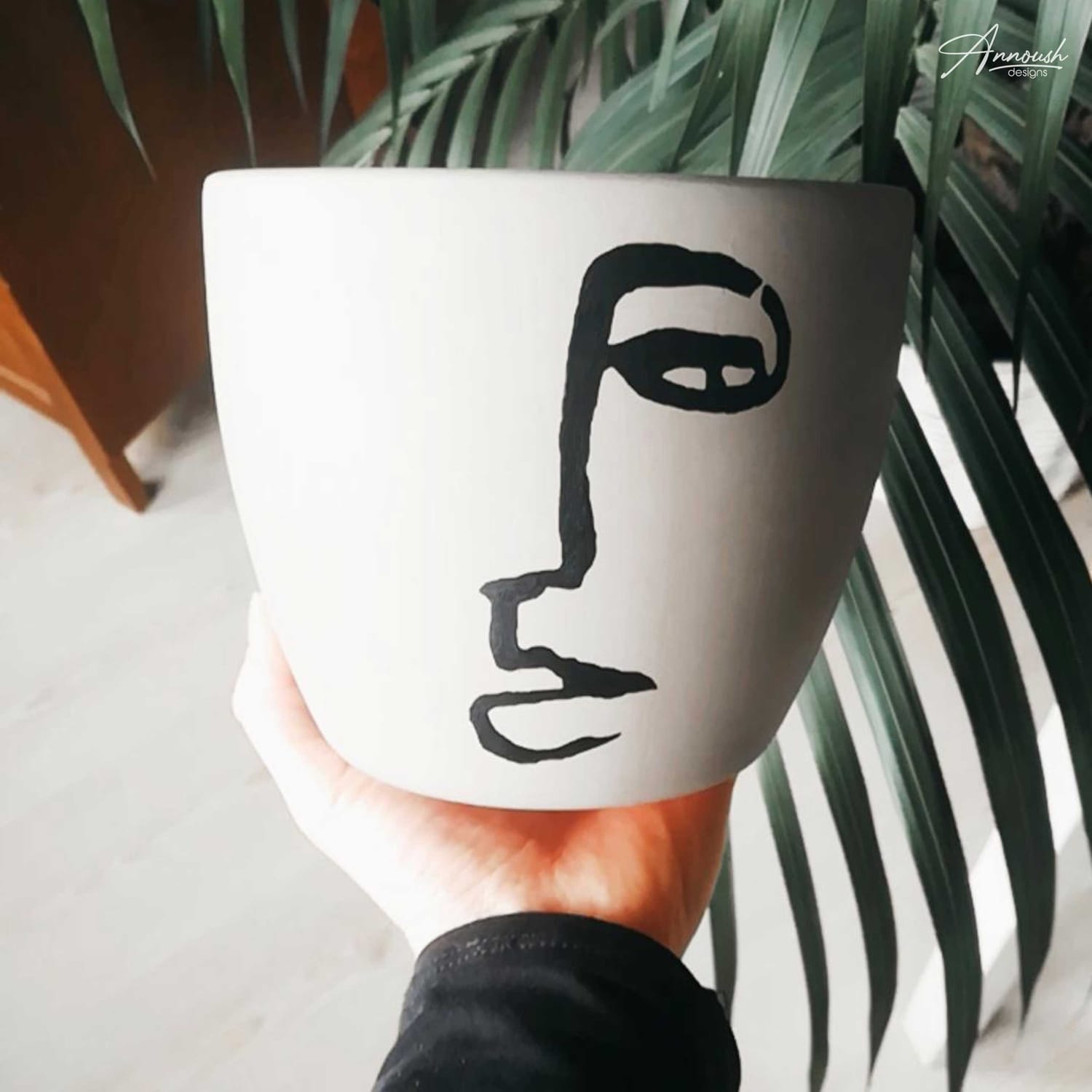 Auch unregelmäßige oder gewölbte Oberflächen lassen sich mit etwas Fingerspitzengefühl verzieren. Mein Keramik-Blumentopf-Projekt zeigt, wie das funktioniert und dass sich auch auf organischen Formen ein Schablonen-Muster lohnen kann!